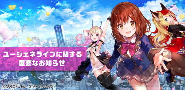 コロプラは、『ユージェネライブ』及び『ユージェネライブVR』のサービスを2022年12月1日をもって終了すると発表しました。