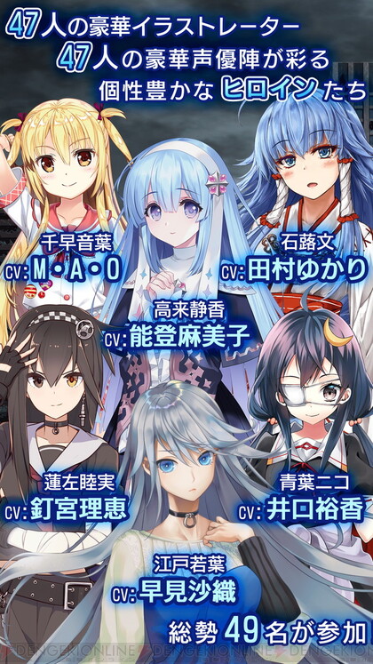 数多くの著名イラストレーターが彩る47人のヒロインが登場。その数たるやといった感じですが、そのそれぞれを豪華声優陣が声を当てているのも魅力。